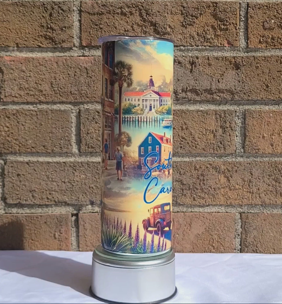 This isn’t just a tumbler — it’s a scenic drive through the Palmetto State. From the historic charm of Charleston to the glow of the coast, this cup wraps South Carolina’s best views into one stunning design. Lighthouses, marshlands, bridges, and backroads — all captured in warm, nostalgic color.