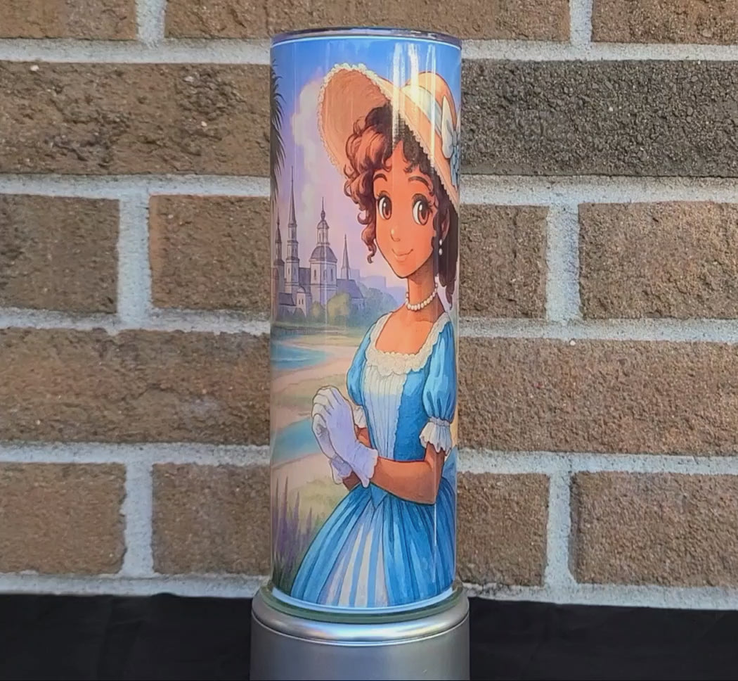 Soft sunsets, timeless beauty, and history come to life on this anime-style tumbler. Featuring a classic Southern look, elegant gardens, waterfront views, and grand architecture, it’s a graceful tribute to small-town charm and golden-hour dreams.