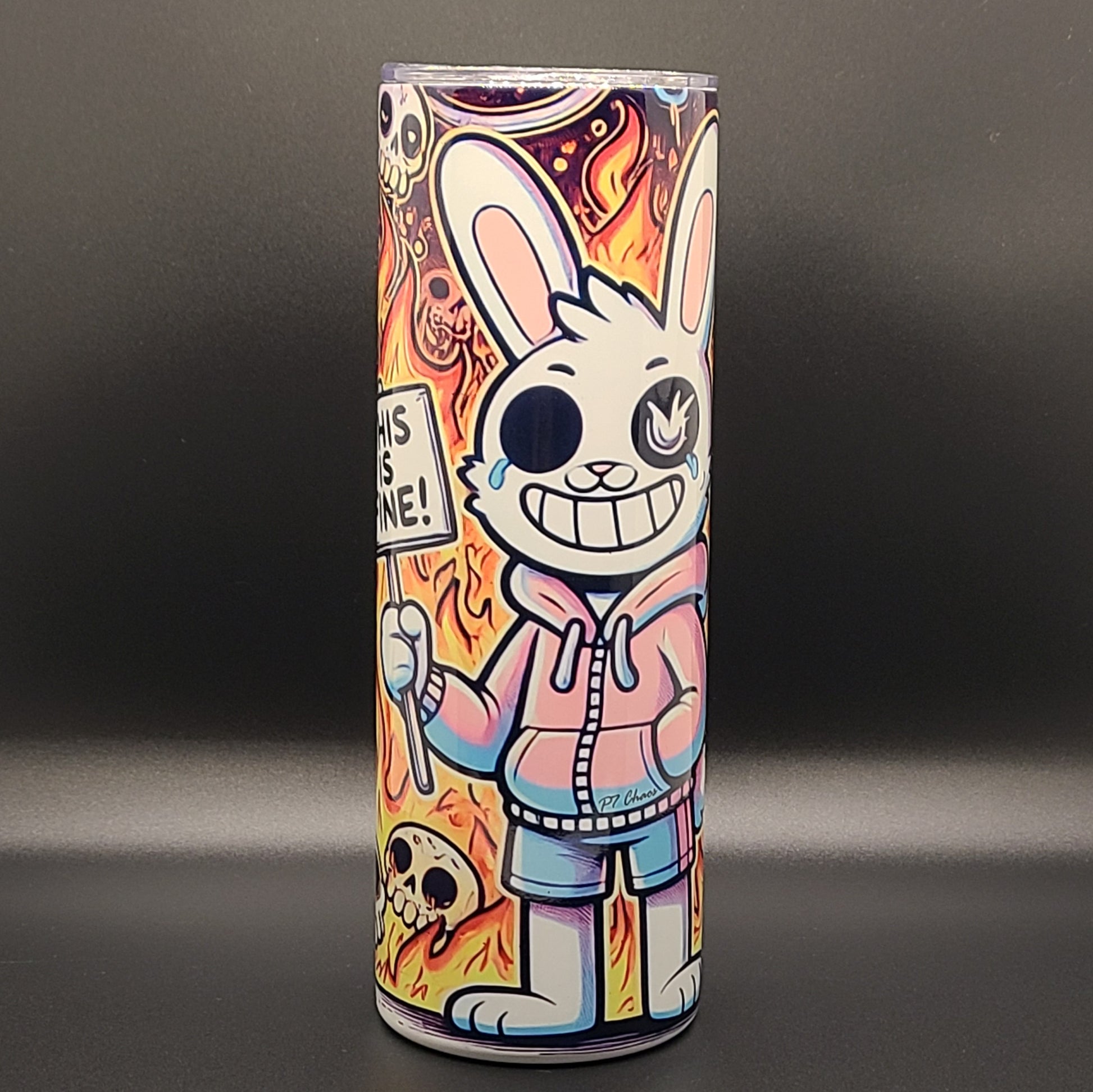 Grinning through the flames like a true survivor, this deranged bunny is giving off “everything’s fine” energy—while the world burns. Relatable? Definitely.